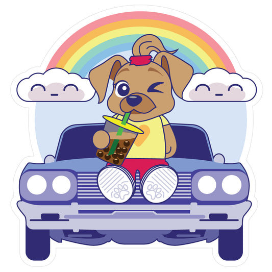 This is our boba buddy Memo. When he's not hanging with his boba buddy Drea, you can find him bringing life to laptops and water bottles across the city.